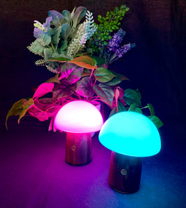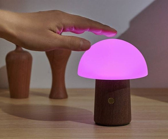 These cute little Mushroom Lamps add a warm glow to the home, with a solid White light or a rotating spectrum of colours, ideal as a Desk Lamp or night light, or an addition on a shelf. Finished with a Walnut base.